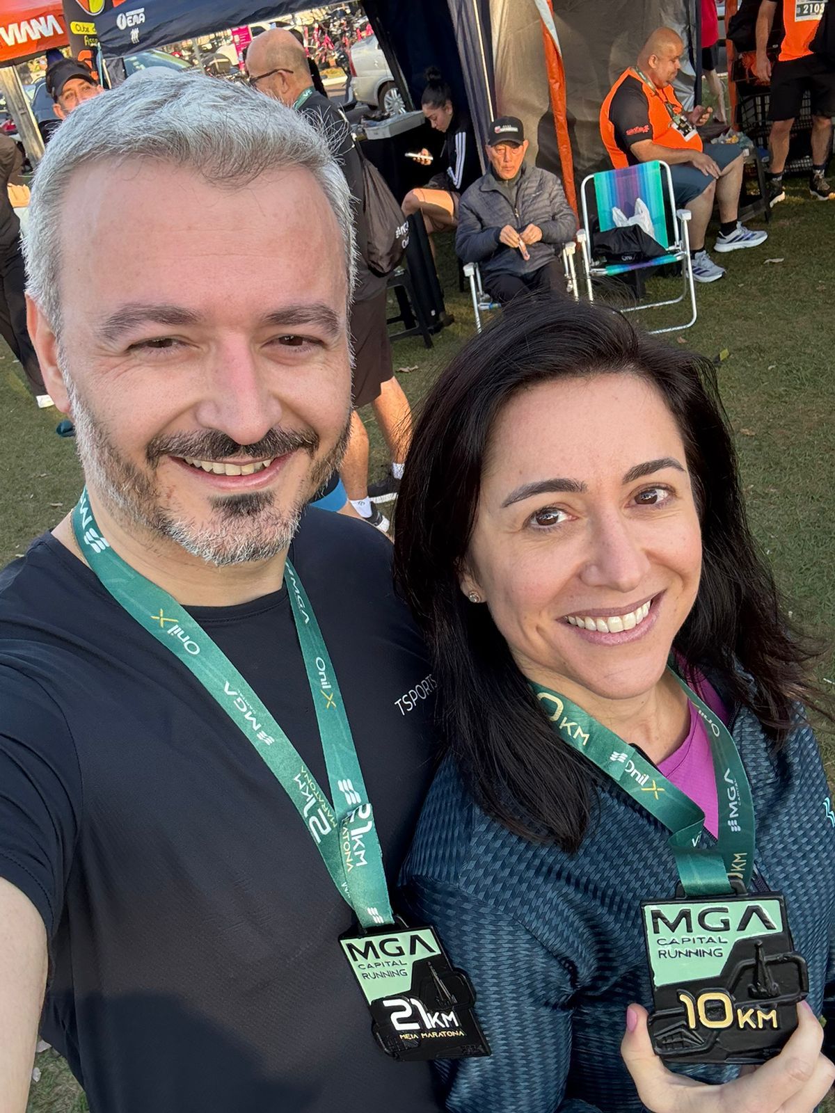 A OUT nasceu da nossa própria rotina: somos pais, profissionais e apaixonados por movimento. Sabemos como é conciliar treinos, trabalho, família e ainda encontrar tempo para cuidar da gente. Jovane já correu duas maratonas, diversas meias e participou de provas desafiadoras como o L’Étape Brasil e o Audax 200. Além da corrida, também encontra no pedal uma forma de testar seus limites.
